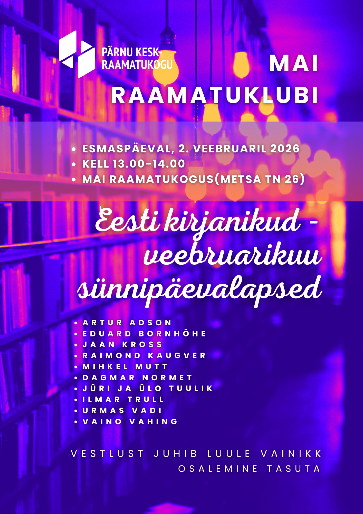 Mai raamatuklubis 2. veebruaril: eesti kirjanikud - veebruarikuu sünnipäevalapsed