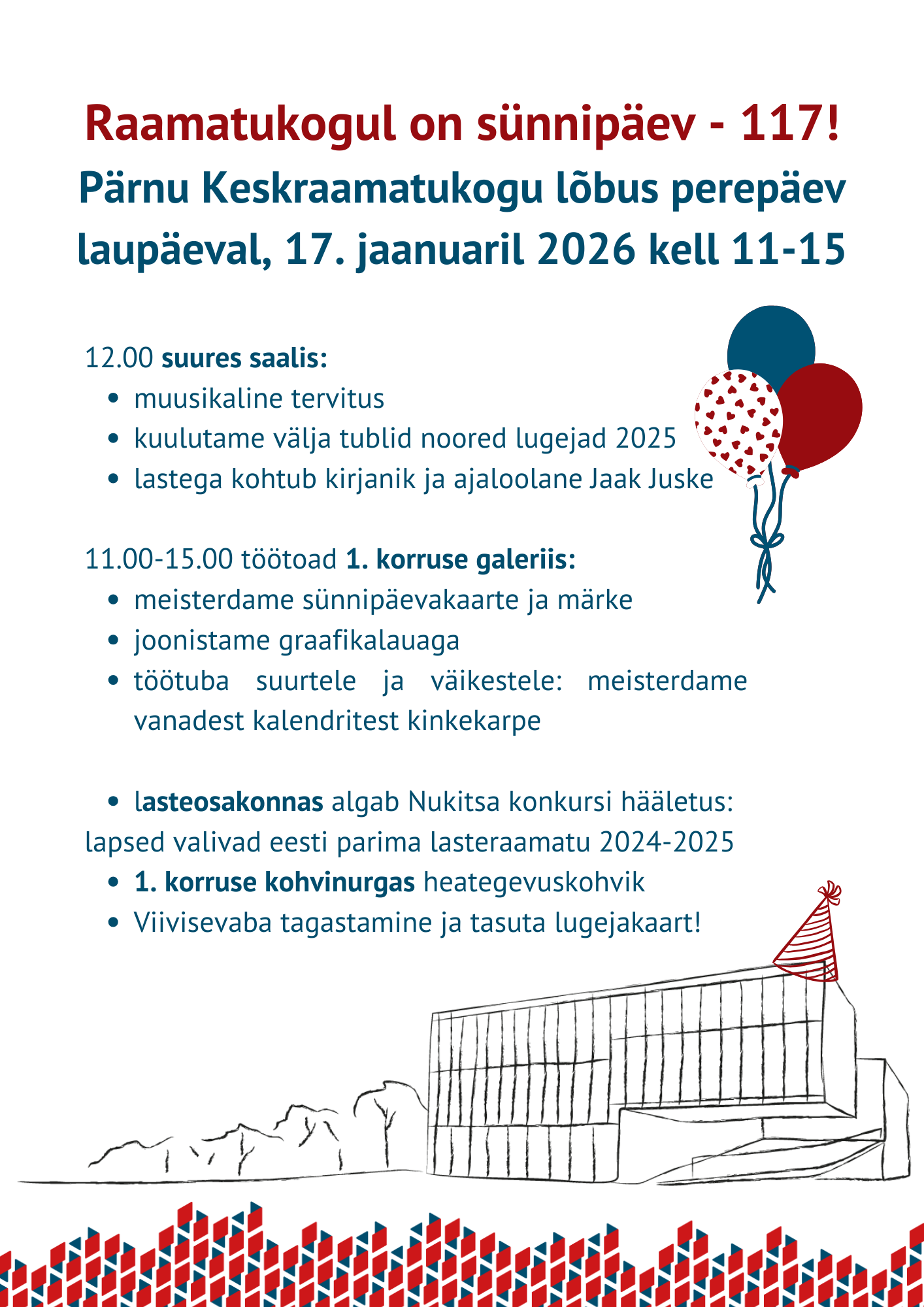 Pärnu Keskraamatukogu 117: lõbus perepäev 17. jaanuaril