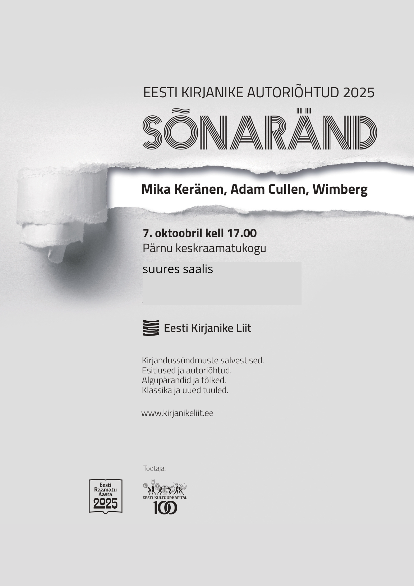 Sõnarännu korraldab Eesti Kirjanike Liit Eesti Kultuurkapitali toel.