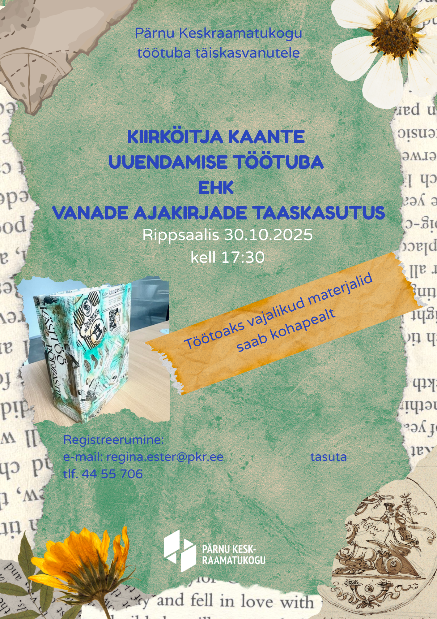 30. oktoobril kell 17.30 algab rippsaalis taaskasutuse töötuba täiskasvanuile. Sel korral anname vanadele kiirköitjatele uue väljanägemise.