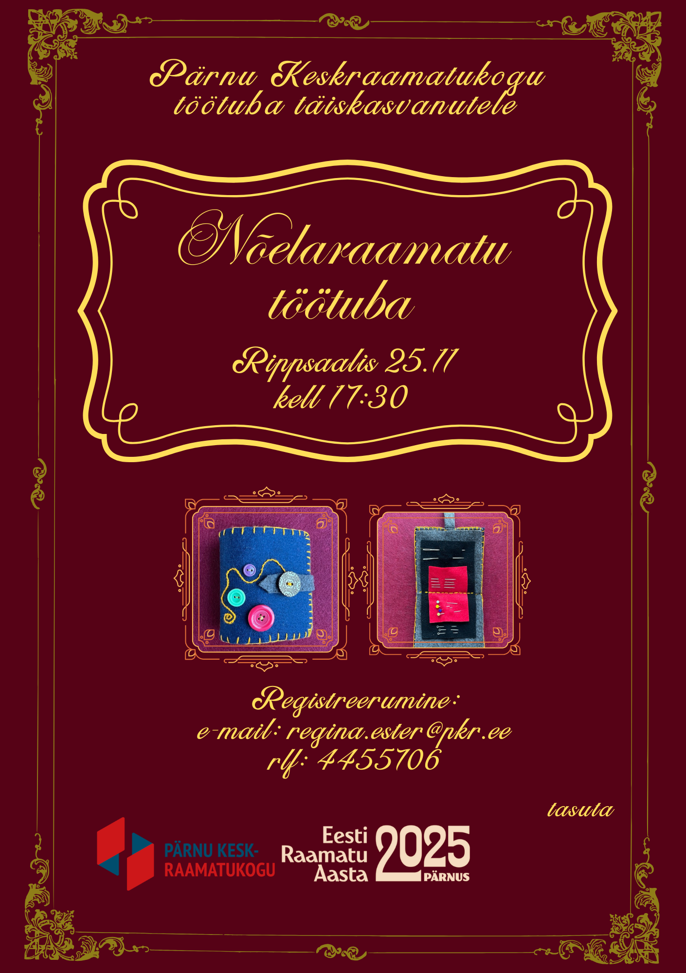 25. novembril kell 17.30 Pärnu Keskraamatukogu rippsaalis algavas töötoas täiskasvanutele valmistatakse nõelte hoidmiseks vildist raamatuke.