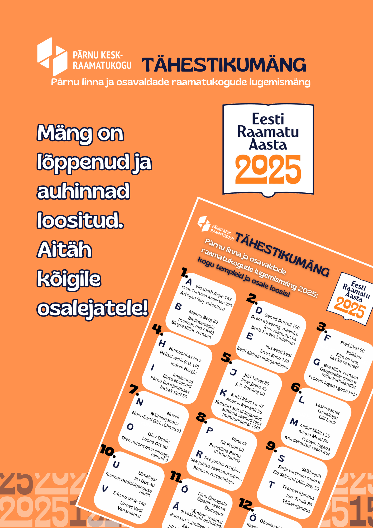 2025. aasta lugemismängu – Eesti raamatu aasta tähestikumängu kokkuvõtted on tehtud ja auhinnad loositud.